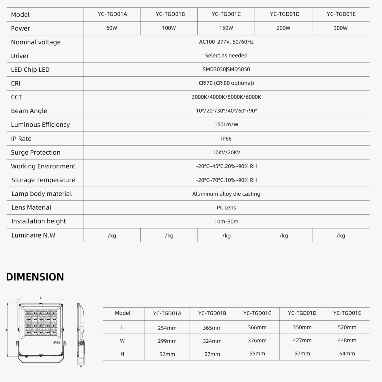 | YC-TGD01-50W | 358*294*52 | 50w | Heat sink Aluminum body,Glass,Bracket,304 screws, PCB, ΦΑΚΟΣ. |