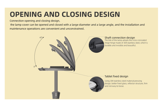 Connection opening and closing design, the lamp cover can be opened, closed with a large a large angle,